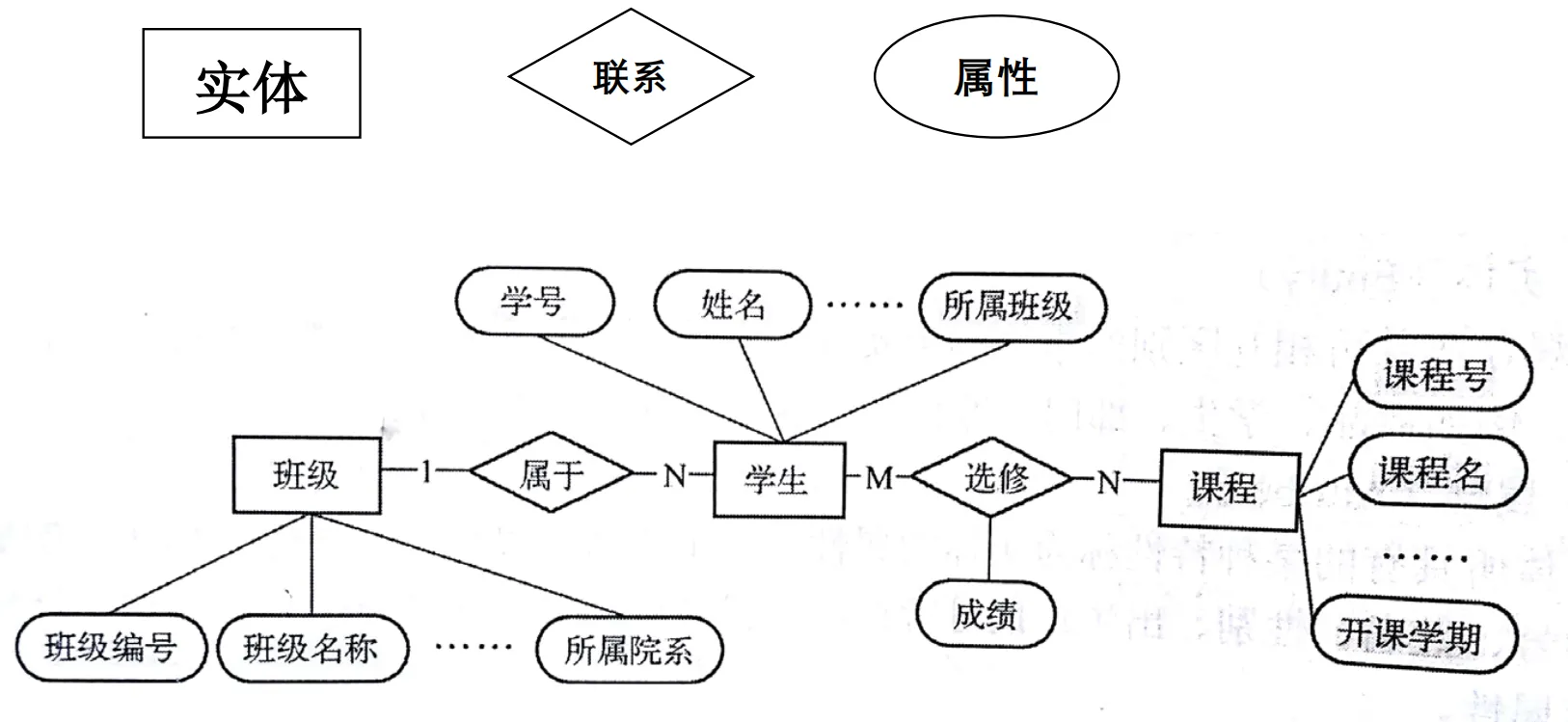 - 实体:客观存在并可相互区别的事物称为实体。如学生、部门、课程等